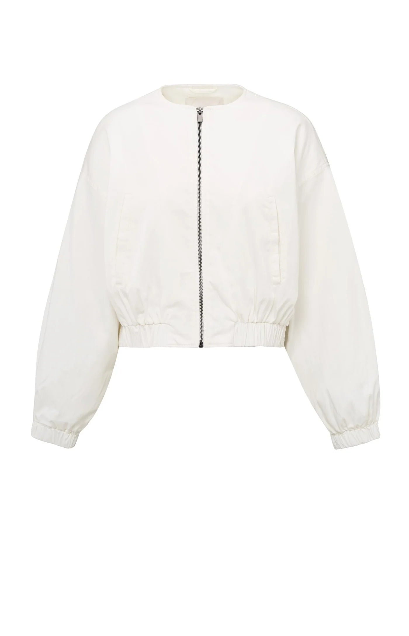 This stylish bomber jacket features a short, regular fit and is made from a lightweight woven fabric. Designed with a zipper closure, round neckline, and elastic cuffs for a subtle sporty touch. A versatile piece that can be effortlessly styled for both casual and chic looks. The model is 175 cm and wears size 36.