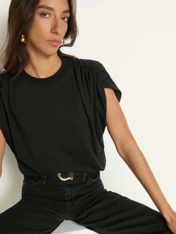 Like your favorite tee, but cooler. This muscle tee features a ribbed crew neckline, a relaxed fit, and shirring at the shoulders for maximum impact. This one comes in Jet Black.