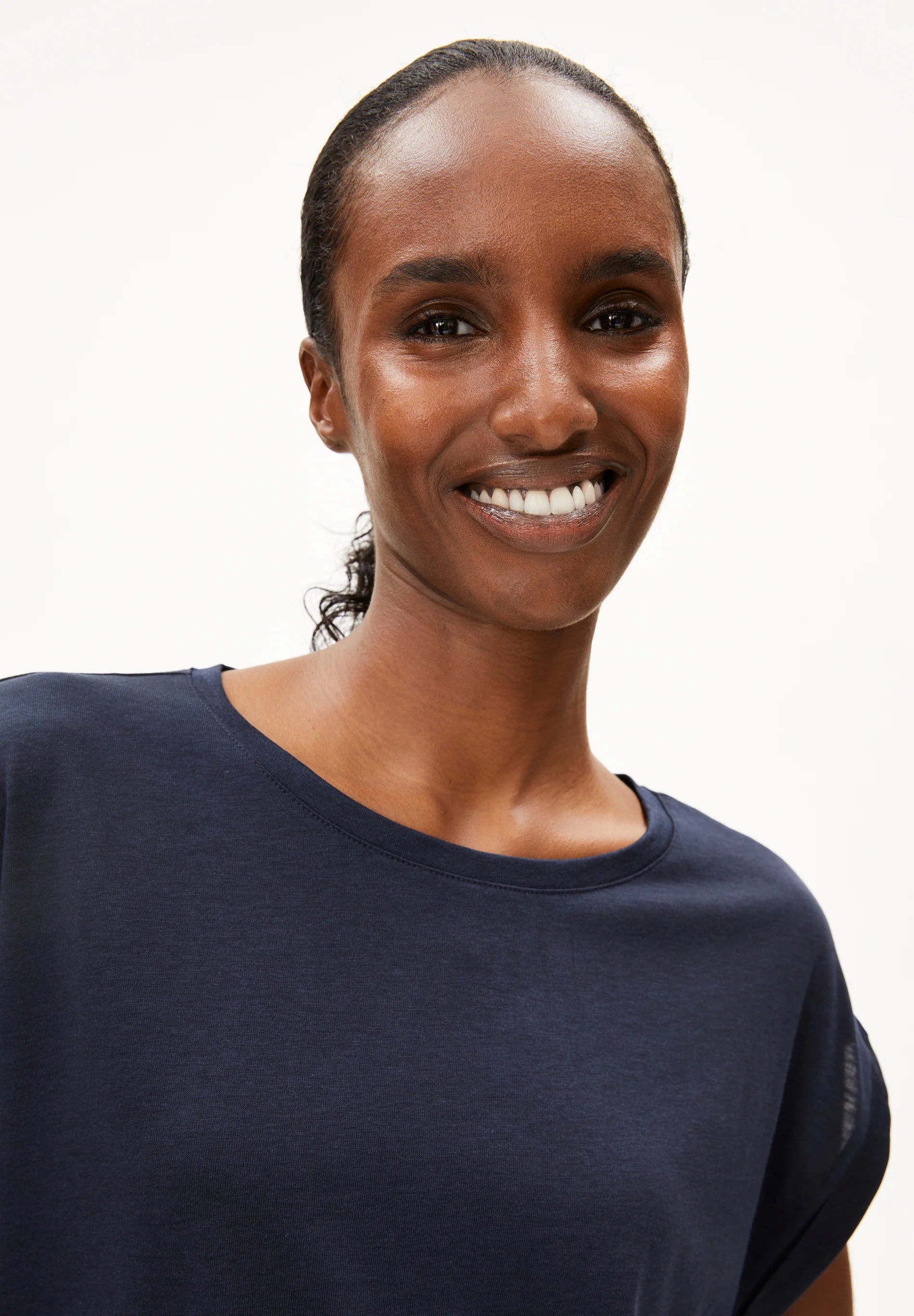 Our JILAANA T-shirt offers you a comfortable, loose fit and a pleasant blend of TENCEL™ Lyocell and organic cotton. The soft fabric fits snugly and ensures a relaxed feel.