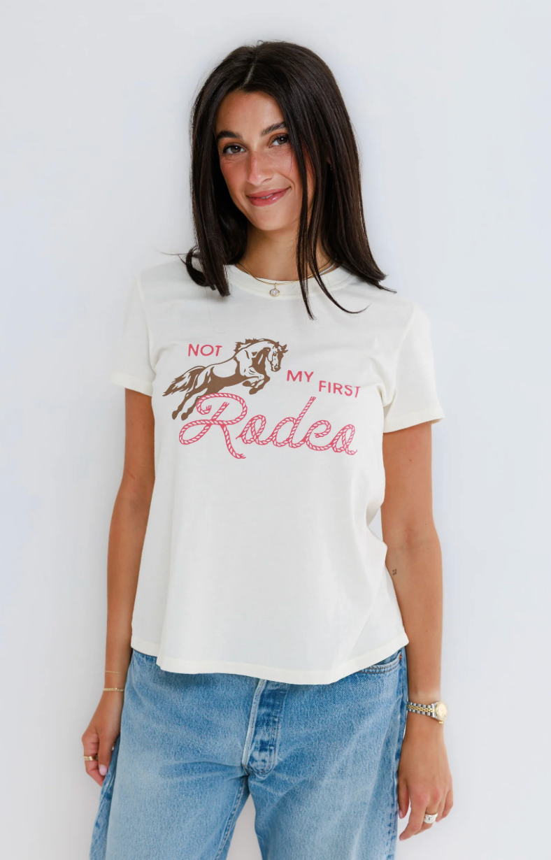 The Not My First Rodeo Femme Crew brings a little grit with a whole lot of charm. With its vintage inspired graphic and easy fit, it feels bold, playful, and quietly powerful, made for women who’ve been there and still show up smiling.