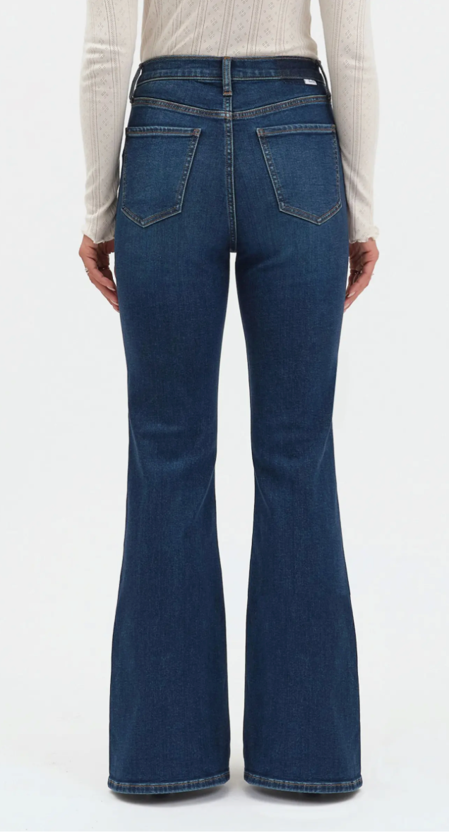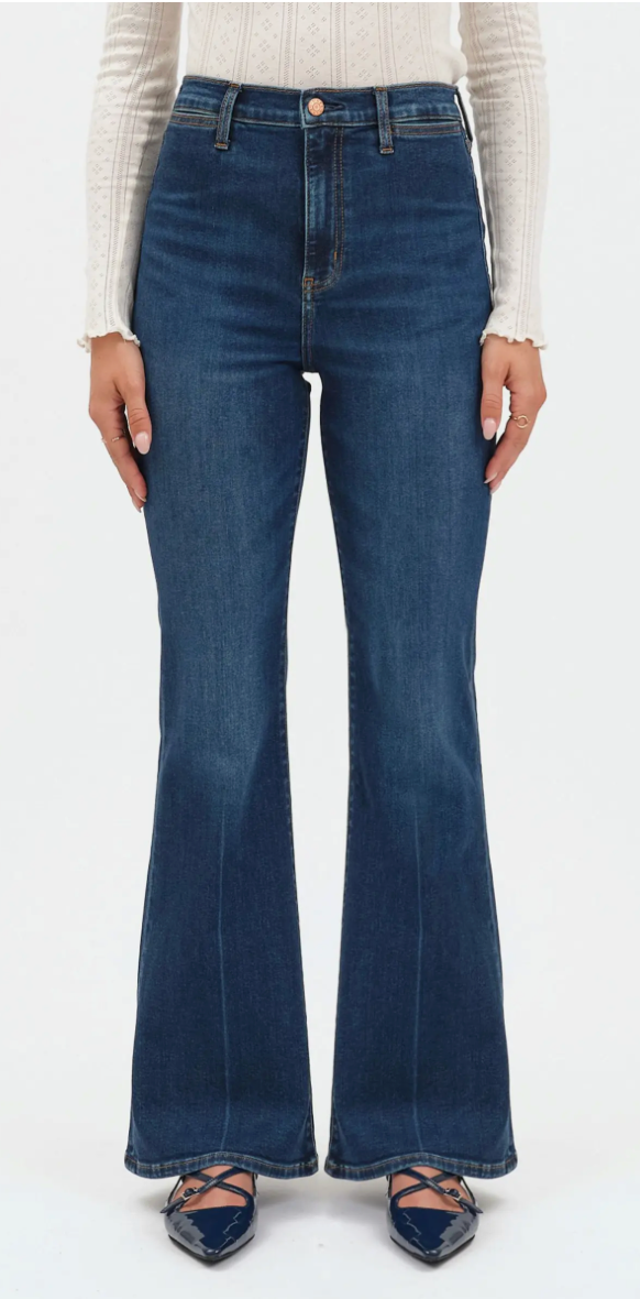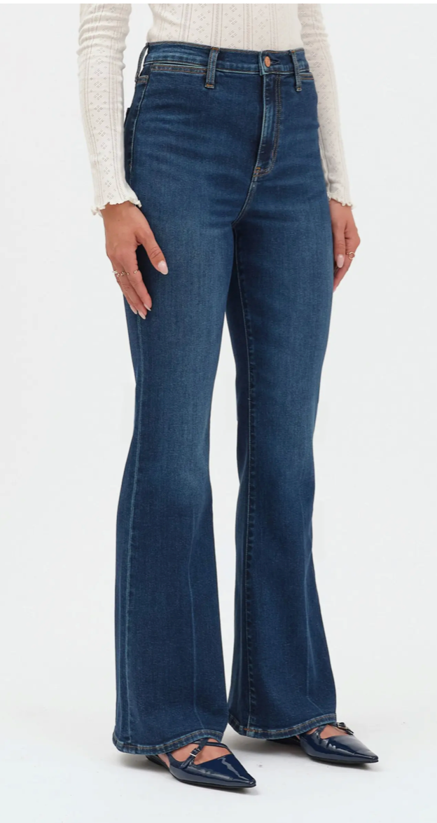 Steal the show in these high-waist, full-length flare jeans cut from stretch-kissed denim in an everyday dark wash.