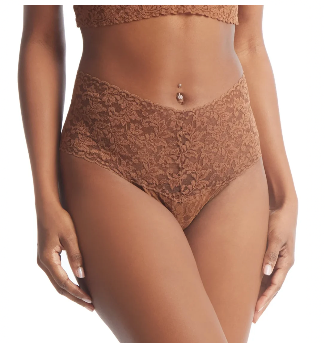 Dream big in an ultra comfortable high rise thong with a wide waistband. It’s the lace thong that feels like you’re wearing a hug!