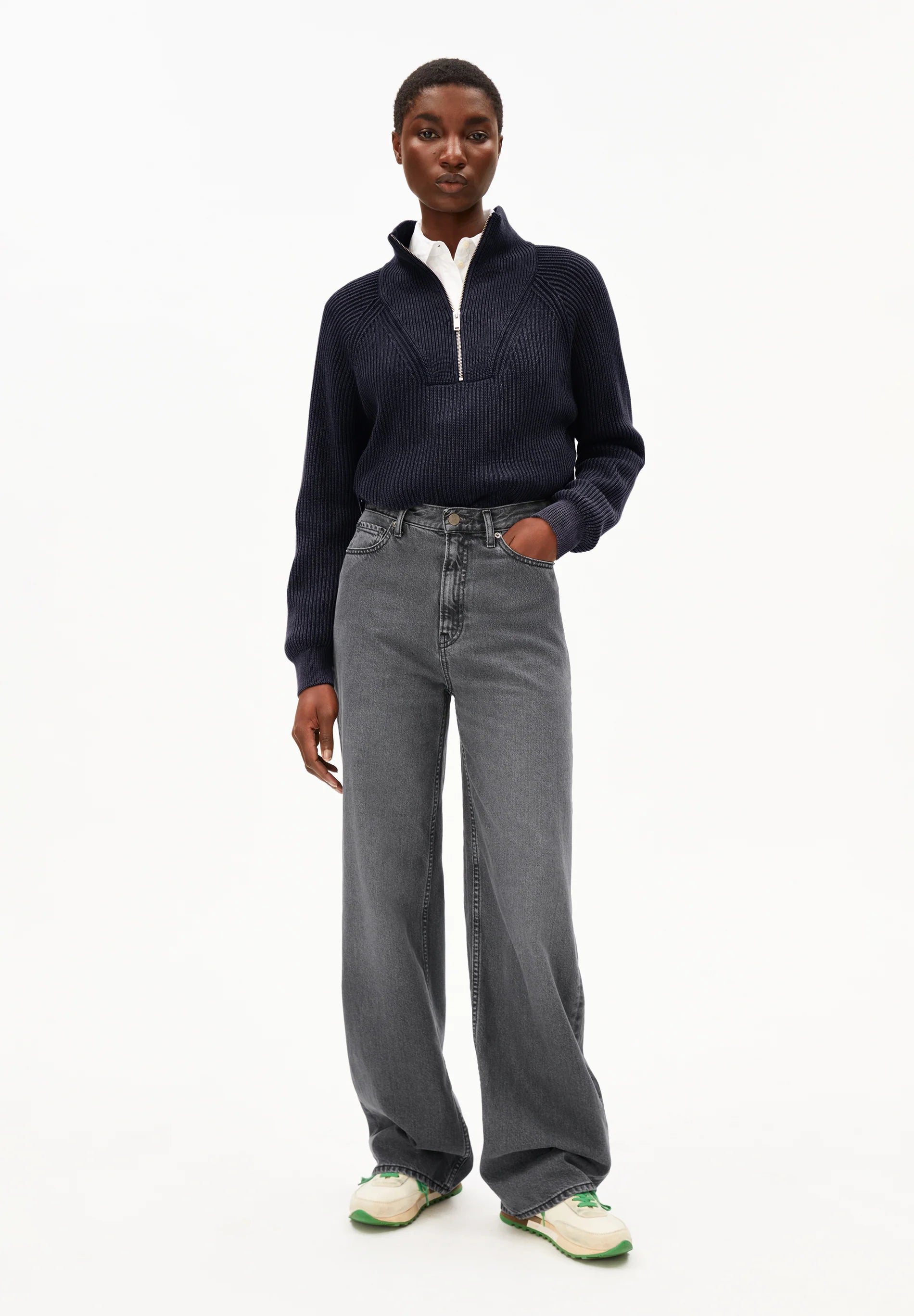 The RONYIAAS GMT DYE knit sweater stands out with its ribbed texture and relaxed fit. The Troyer-style collar adds functionality, while the garment-dyed organic cotton ensures a soft, comfortable feel.