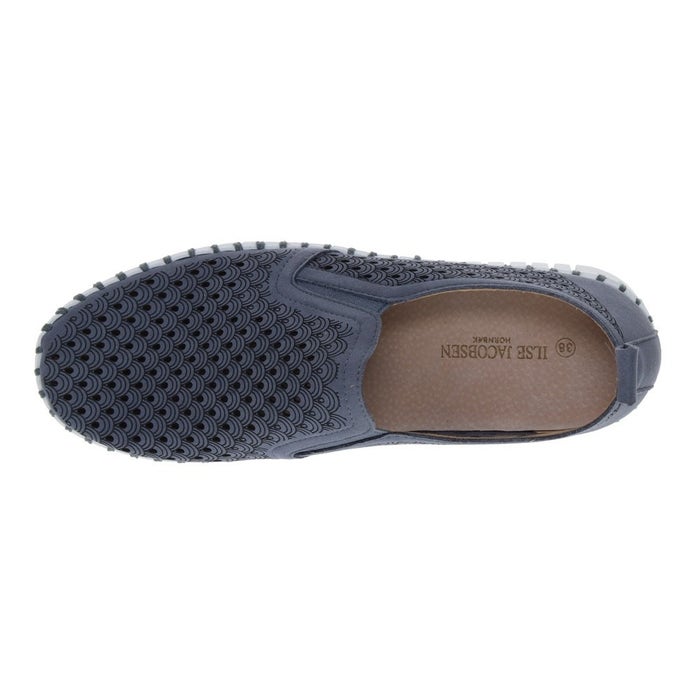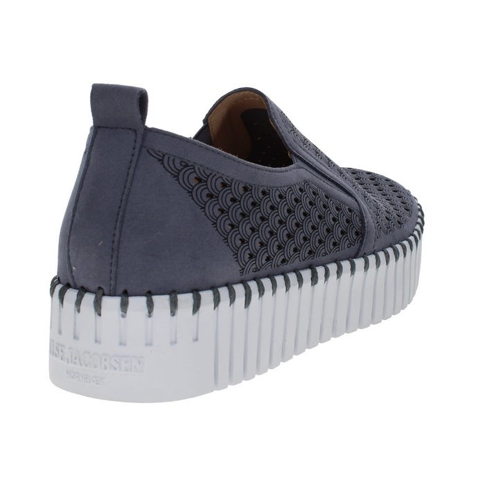 The Ilse Jacobsen Ladies Tulip Platform Slip-On combines style, comfort, and sustainability. Crafted from recycled microfiber with a decorative laser-cut pattern, this slip-on offers a flexible fit with elastic side panels for easy wear. Paired with the iconic Tulip outsole, made from 75% natural rubber and 25% recycled rubber, it’s designed for durability and eco-conscious living. The use of recycled thread and no glue in construction enhances the sustainable appeal.