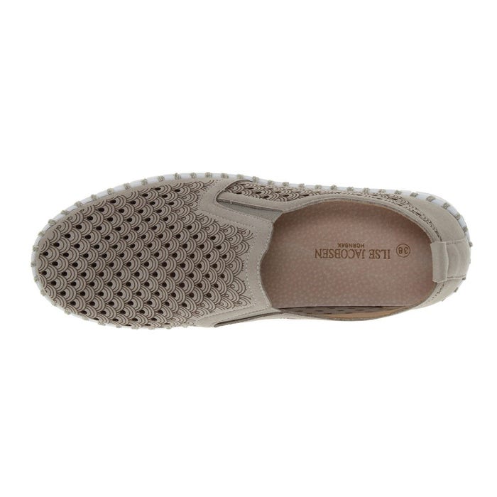 The Ilse Jacobsen Ladies Tulip Platform Slip-On combines style, comfort, and sustainability. Crafted from recycled microfiber with a decorative laser-cut pattern, this slip-on offers a flexible fit with elastic side panels for easy wear. Paired with the iconic Tulip outsole, made from 75% natural rubber and 25% recycled rubber, it’s designed for durability and eco-conscious living. The use of recycled thread and no glue in construction enhances the sustainable appeal.